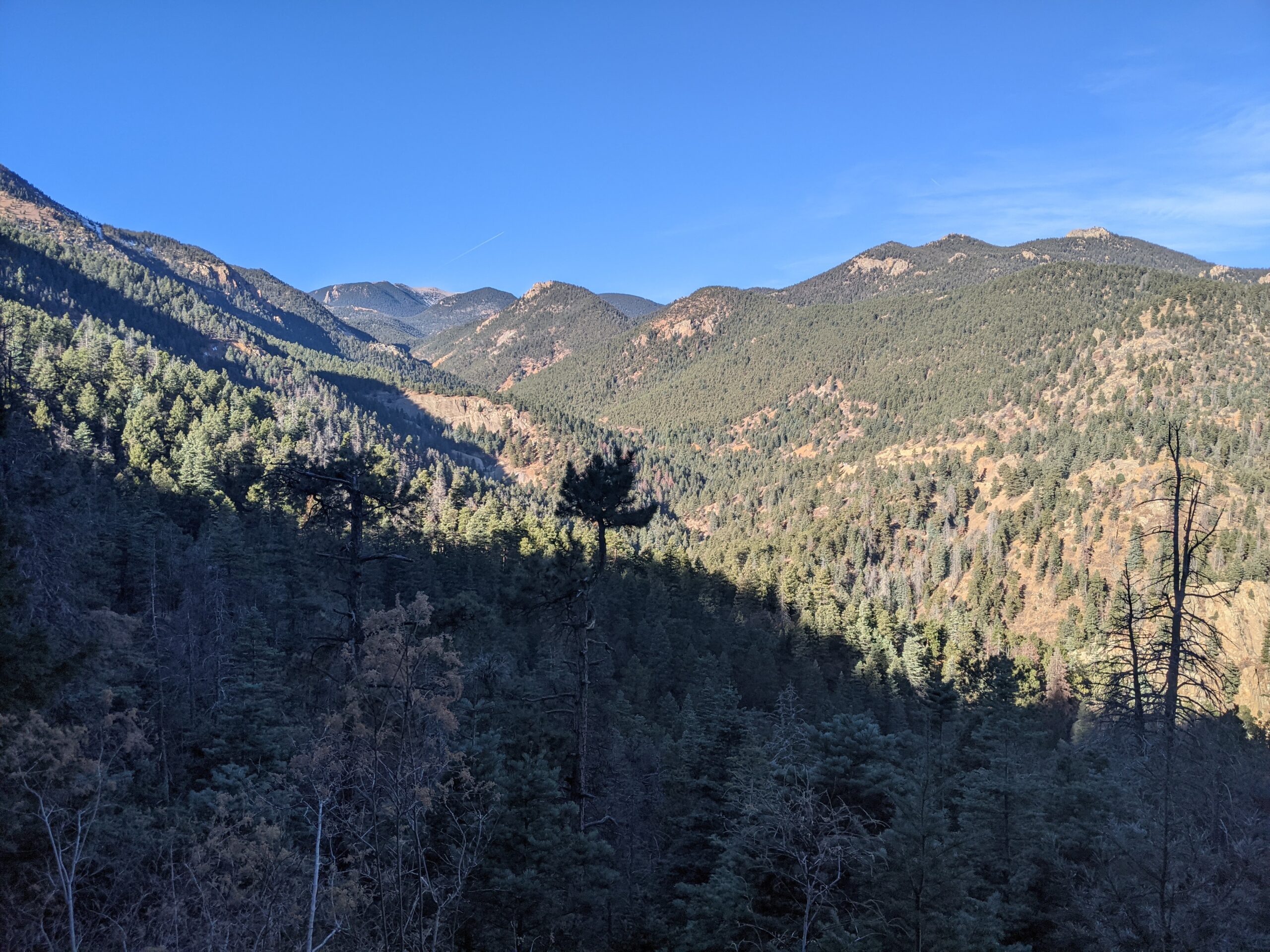 Helen Hunt Falls is one of the park’s most iconic features and serves as a starting point for multiple trails. Visitors can enjoy a short, family-friendly walk to Silver Cascade Falls or take on longer hikes that begin at the falls and climb higher into the canyon. In 2021, the Daniels Pass Trail System added nearly seven miles of new routes. These multi-use trails include Daniels Pass (2.0 miles), Sweetwater Canyon (3.07 miles), Middle Sweetwater (0.42 miles), and Bruin Trail (0.62 miles). Two short routes—Mt. Muscoco (0.33 miles) and Greenwood Path (0.18 miles)—are open to hiking only.