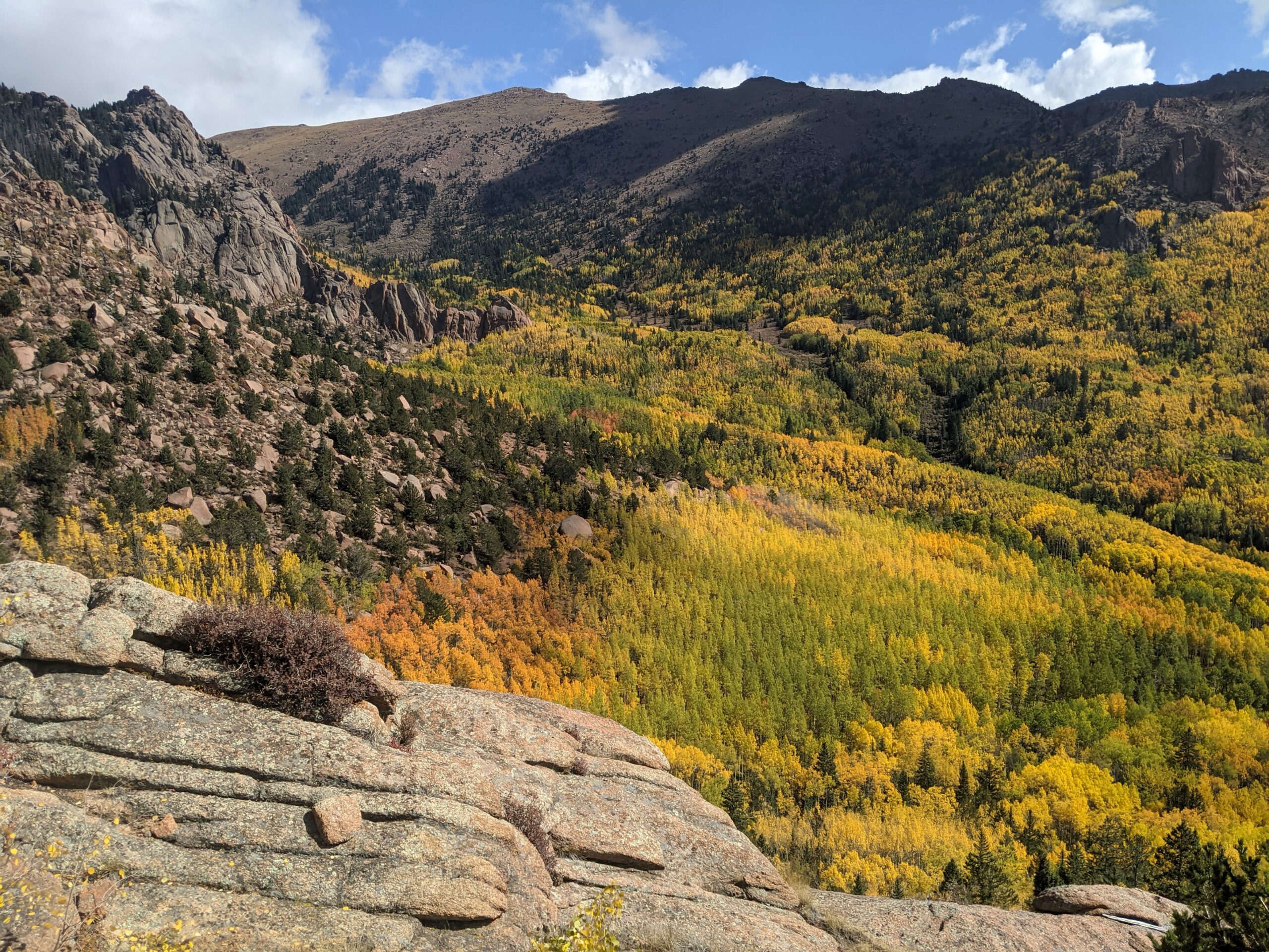 Along the way, hikers are treated to dense forest, alpine meadows, and breathtaking views of Pikes Peak’s south slopes and the surrounding Teller County high country. Wildlife sightings often include marmots, pikas, mule deer, and a variety of alpine birds. In late summer, wildflowers add splashes of color to the meadows, while fall brings golden aspen groves.